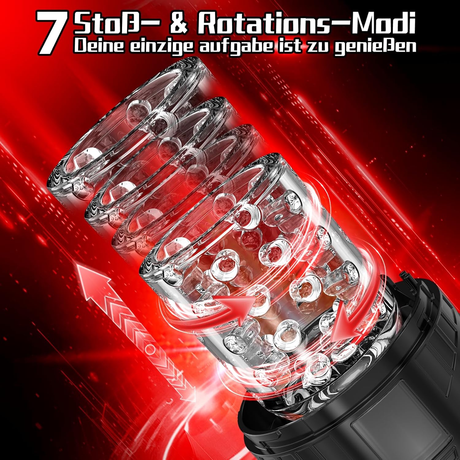 Dieser elektrische Masturbator für Männer wurde entwickelt, um Dir ein intensives, abwechslungsreiches und komfortables Solo-Erlebnis zu bieten. Mit Ein-Klick-Turbo, 7 Stoßmodi und 7 Rotationsgeschwindigkeiten passt Du die Stimulation ganz einfach an Deine Wünsche an.